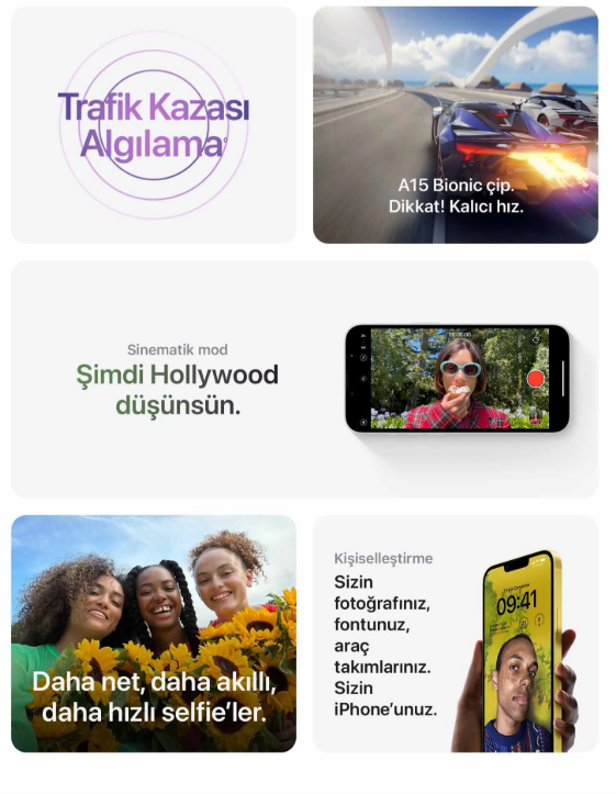 6.1 inç Super Retina XDR ekranı ile filmler ve oyunlar gerçek hayattan farksız görünür. Gelişmiş çift kamera sistemi sayesinde gece modu, portre modu ve sinematik mod gibi özelliklerle profesyonel kalitede fotoğraf ve videolar çekebilirsiniz.